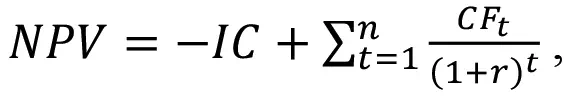 где NPV – чистый дисконтированный доход; IC – первоначальные инвестиции; CFt – денежный поток в периоде t; r – ставка дисконтирования; n – количество периодов1 [1].